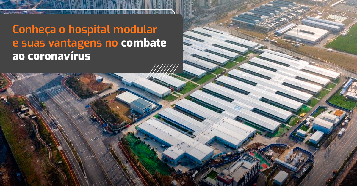 Hospitais modulares em estruturas metálicas, entregues em semanas durante a pandemia, com uso de tecnologia off-site. Rapidez, eficiência e resposta humanizada.
