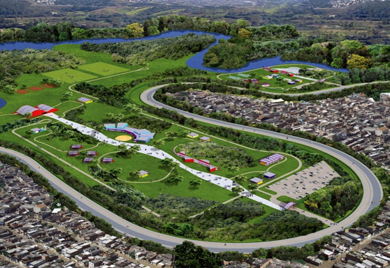 Projeto de drenagem e urbanismo que combate enchentes e cria espaços verdes.